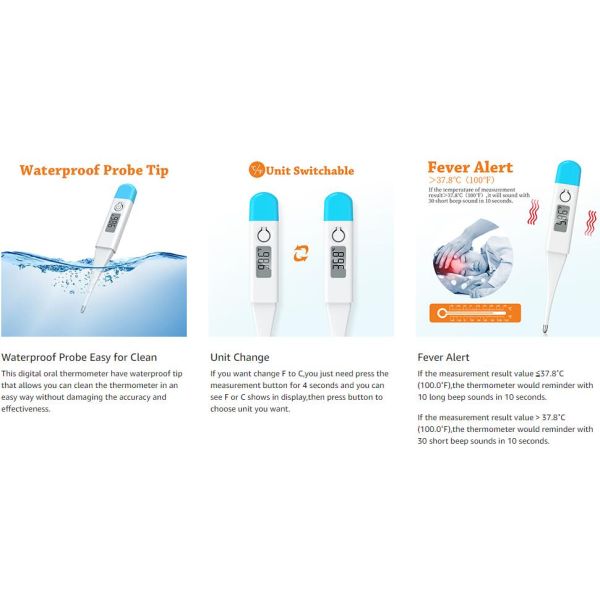 This digital oral thermometer with LCD screen.3-in-1 function that you can use it for oral, armpit, and rectal for baby kids and adults.